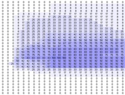 Cell indices represent the upper limits of 1 Celcius thermal